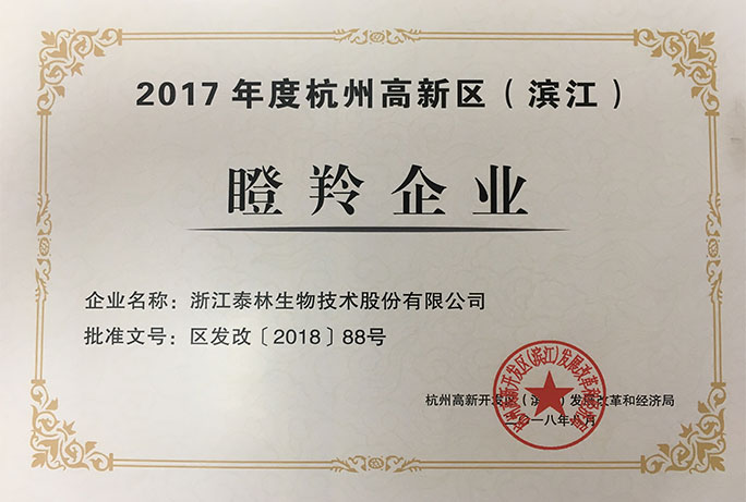 泰林生物連續(xù)3年獲評高新區(qū)(濱江)瞪羚企業(yè)稱號